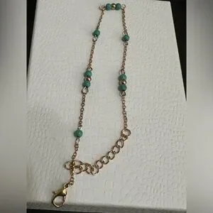 Gold anklet with turquoise beads.