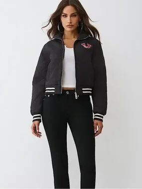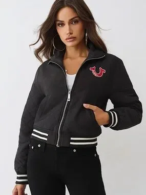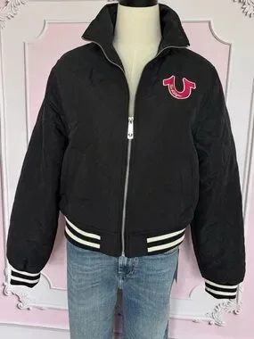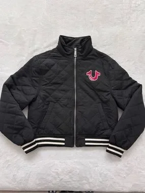 True Religion horseshoe quilted zip up bomber jacket.