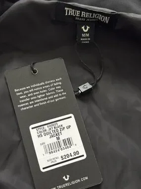 TRUE RELIGION Horseshoe Quilted Black Zip Up Bomber Jacket--NWT--M