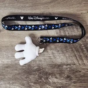 Walt Disney World Reversible Pin Lanyard Trading & Disney Parks Mickey Mouse Glove Keychain Set - You get Both - Blue & Black with the Disney Mickey Mouse Design