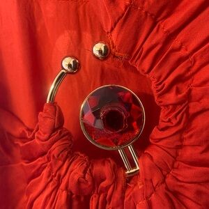 Farm Rio red satin one shoulder midi dress. Unique cut out gem detail.