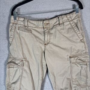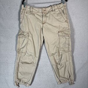 Polo Jeans Co Ralph Lauren Cargo Capris Women Size 32x21 Khaki Tie Ankle Utility