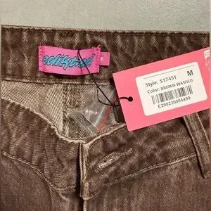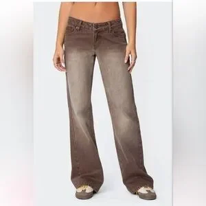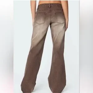 Edikted Brown Flare Wide Leg Jeans with Vintage Look NWT