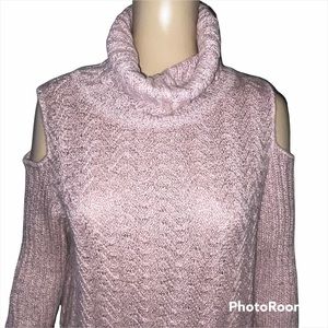 Like new condition. Marled dusty Rose. Chevron knit. Turtleneck with cold shoulder. 22” pit to pit x 26”