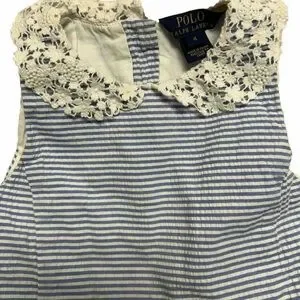 Girls Polo Ralph Lauren Formal Blue Seersucker Spring Or Summer Dress Size 4