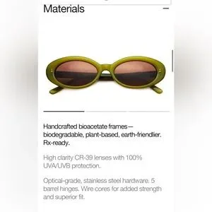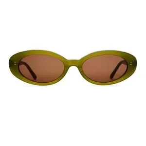 Stylish olive green oval sunglasses designed for everyday wear. Lightweight frame with brown-tinted lenses for comfortable sun protection. Modern silhouette that complements casual and dressy looks. Olive green color adds a unique, on-trend touch.