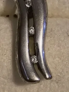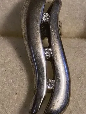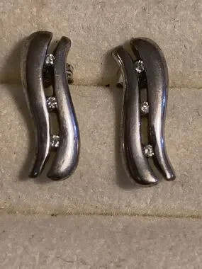 Stylish sterling silver wave earrings with three sparkling diamond accents that have a weight of 00.03 ct. each. Lightweight design for everyday wear. Polished silver finish complements any outfit. These earrings look brand new and quite possibly have never been worn but I got them at an estate auction so I can't be sure.