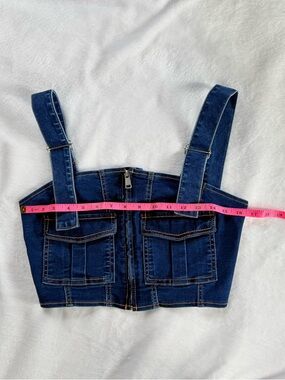 Denim Zip-Front Crop Vest Top Stretchy with Pockets and Adjustable Straps Small