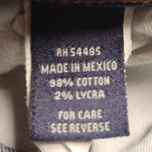 Light blue denim with visible golden contrast stitching. Branded button and label detail at waistband. Classic five-pocket style implied by design. Casual, easy-to-wear denim.