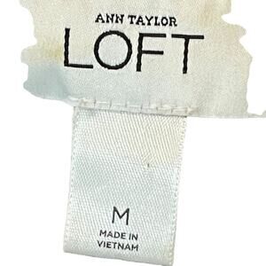 This Ann Taylor Loft dress in size M features a round neckline and sleeveless design, perfect for warmer seasons. The dress is made of a knit fabric with a blend of polyester, spandex, and rayon, making it lightweight and easy to care for with machine washable instructions. The dress has a solid pattern with a knee-length hemline and a pullover closure. It's a versatile dress suitable for casual and travel occasions with its collarless blouson style and ruffle accents. The dress has a brown color that complements its feminine silhouette. This piece is from LOFT's regular size department and is not handmade. It's a stylish addition to any wardrobe, suitable for summer, fall, and spring.