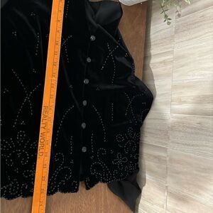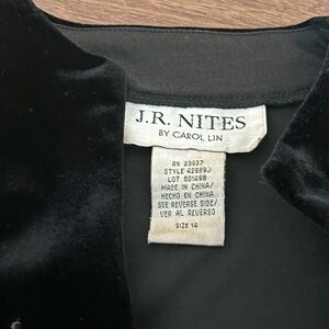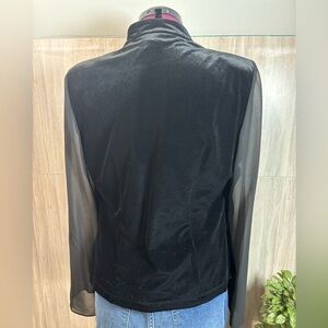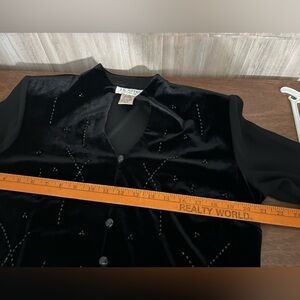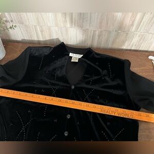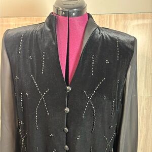 J R Nites by Carol Lin Velvet Black Beaded Women's Blouse Top Sheer Sleeves