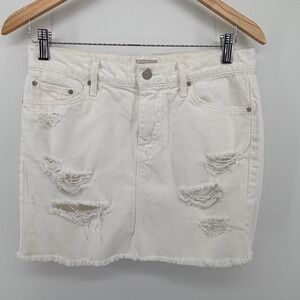 Mother Denim Peg Mini Fray Skirt Party Crashers White Distressed Size 27