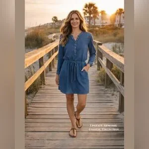 Part of the Upstate Armoire Coastal Collection, this dress captures that laid-back beach town vibe—perfect for coastal strolls, weekend brunch, or vacation wear.