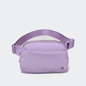 Large Lilac Purple Water-Resistant Nylon Travel Belt Bag with 5 Zipper Pockets