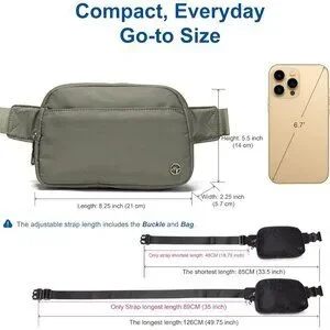 Features: Lightweight and designed with a sleek silhouette, this water-resistant nylon belt bag has five zippered pockets—two roomy main compartments, three hidden pockets, and four card slots inside the main pocket for easy access and organization. The adjustable strap fits comfortably from 89cm to 132cm, making it perfect for various wear styles.