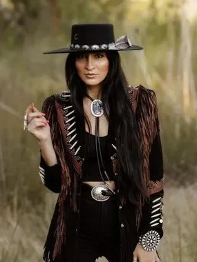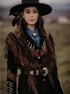 Leather Gallery Women's Black & Brown Suede Fringe Leather Jacket