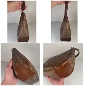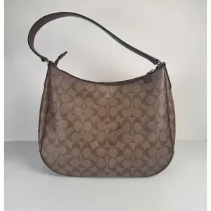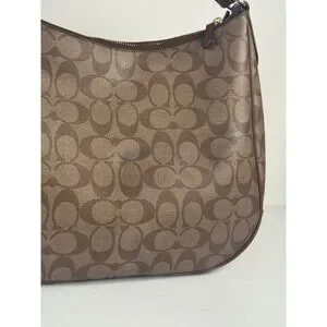 Coach Signature Khaki Canvas Tan Leather Shoulder Zip Hobo Monogram Purse F29209