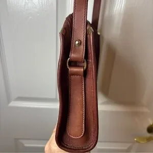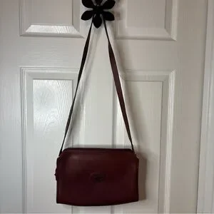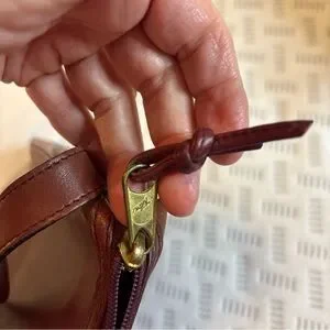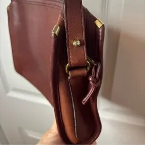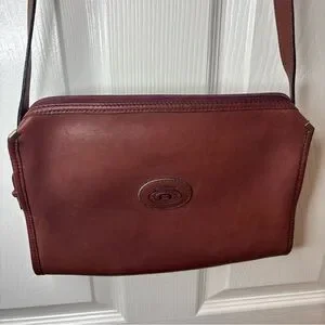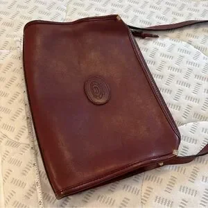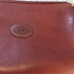 Etienne Aigner Deep Brown Leather Vintage Shoulder Bag Zip Closure Gold Accents