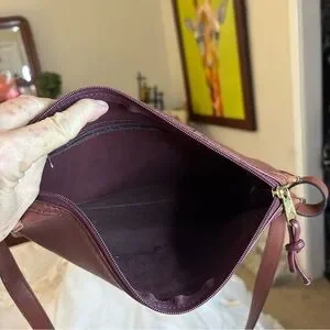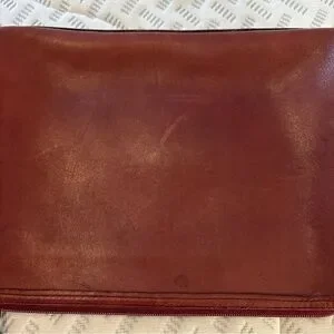 Chic shoulder bag with a rich brown hue. Features a sleek design. Ideal for daily use. There is a scuff mark, a light ink mark and a couple of water marks on the leather as shown in the pictures, but overall a classy looking bag.