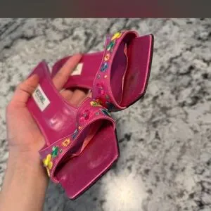 Moschino Pink Floral Embroidered Mule with Green Stiletto Heel