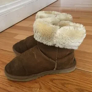 Womans Ugg 5825 Leather Fur Lined Slip-on Short Boots Size 6 W