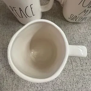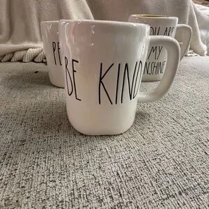 Elegant Rae Dunn mugs featuring uplifting messages. Ideal for hot beverages.