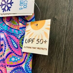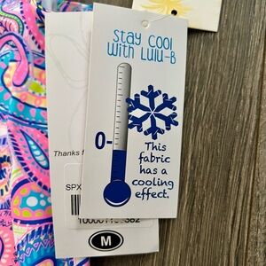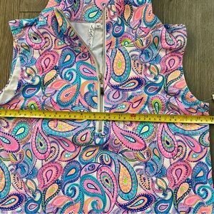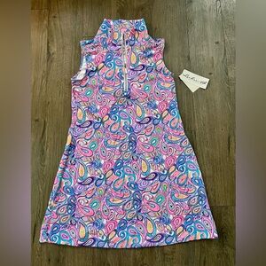 Brand new with tags Lulu B colorful paisley sleeveless dress size Medium. Features a sporty half zip neckline and lightweight stretchy performance fabric. Built in UPF 50+ sun protection plus cooling fabric technology to keep you comfortable in the heat. Bright pink blue and teal paisley print makes this perfect for vacation beach days golf tennis cruising resort wear or everyday summer style. Flowy flattering fit easy to dress up or down. Retail was $89.99. From smoke free home.