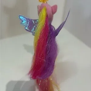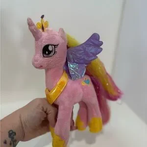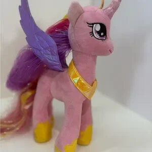 Adorable My Little Pony Candance plush. Pink body with yellow accents. Purple wings and colorful mane. Perfect for cuddles and play.
