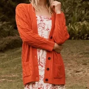 THE GREAT Cable Grandpa Cardigan in Habanero Orange Red Sz XS