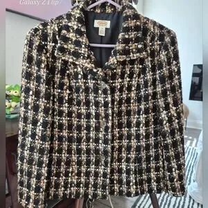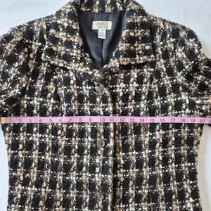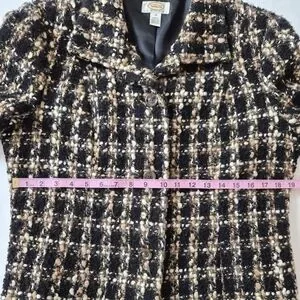 Talbots Petites Black & Tan Bouclé Wool Blend Tweed Blazer - Size 14P