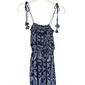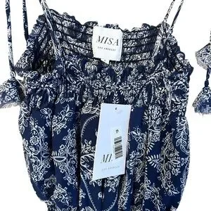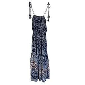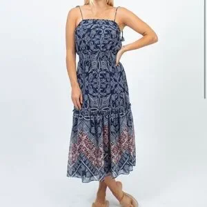 Misa Los Angeles Smocked Midi Dress Navy Multi Print Small NWT Boho Festival