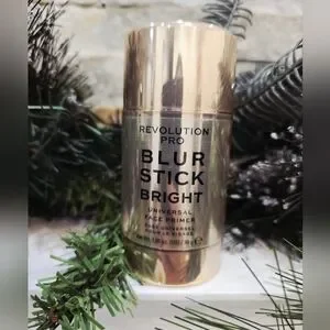 Revolution Pro Blur Stick Bright Universal Face Primer. This product is a pore-blurring, lightweight primer designed to minimize the appearance of pores and reduce excess shine while adding a subtle brightness to the skin.