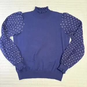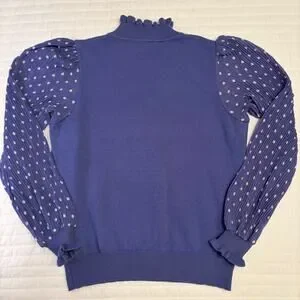 Nanette Lapore Purple Mock Neck Pleated Sleeve Womens Medium