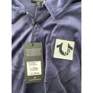 NWT True Religion Velour Polo Shirt Mens XL Eclipse Blue Short Sleeve Logo Patch