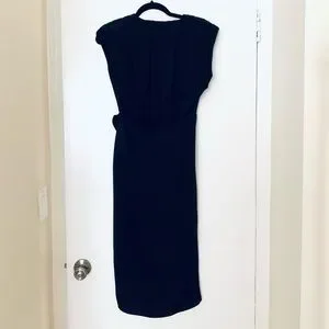 Worn only once and dry cleaned after. The bottom part of the inner label has two dots on it - it looks like sharpie marker and was there when I bought it (fifth pic from the top). The dress itself is in great condition with no obvious flaws.