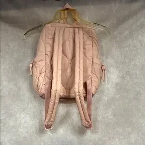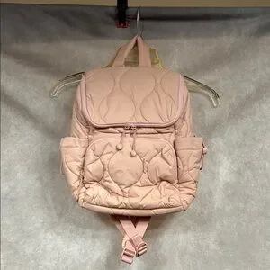 Stylish quilted blush pink mini backpack with multiple exterior pockets for easy organization. Soft padded design and adjustable straps deliver comfortable all-day wear. Versatile blush pink complements casual and feminine looks. Made from Water Repellant, Recycled Materials.