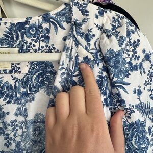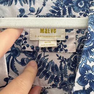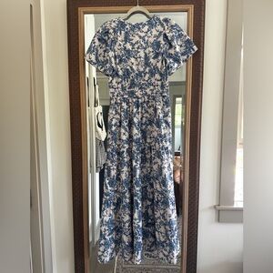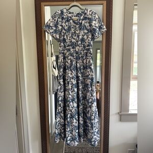 Anthropologie Maeve Blue and White Floral Somerset Short-Sleeve Maxi Dress