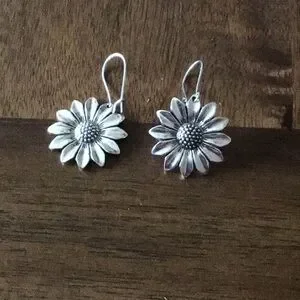 Flower dangle earrings silver in color