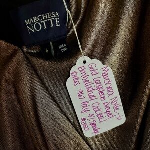 Elegant gold long sleeve dress by Marchesa Notte