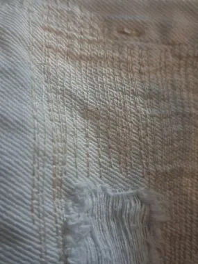 White denim shorts with a relaxed fit. Features a subtle frayed hem and classic five-pocket styling. Easy to pair with tees and sandals for warm days. Great pre loved condition. Good white colour no yellowing. See pictures only one little stop barely noticeable. Smoke free home. Always open to offers. Fast shipping.