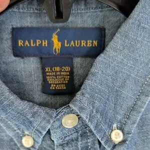 Ralph Lauren Boys Blue Soft Denim Button-Down Shirt SZ XL(18-20) Casual Comfy