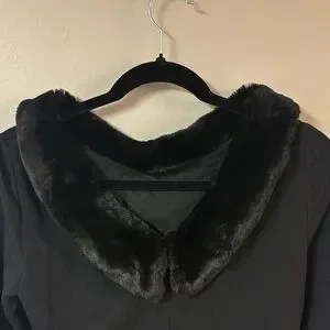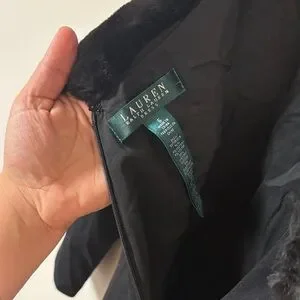 Ralph Lauren Black Elegant Long Sleeve Dress with Luxe Faux Fur Collar