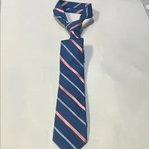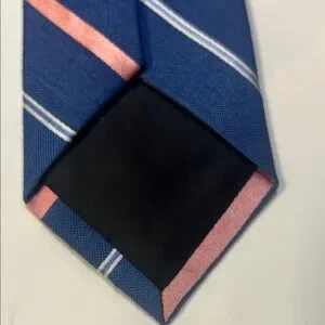 Stylish tie with navy and coral stripes. Ideal for formal events.