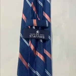 Stafford Navy and Coral Striped Tie