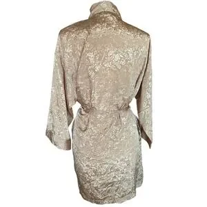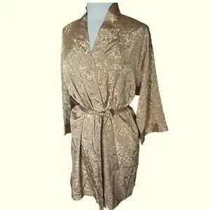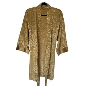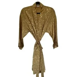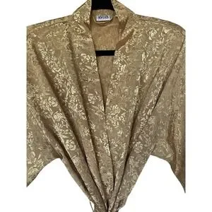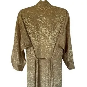 Avon Gold Floral Jacquard Robe Kimono Satin Feel Belted Vintage 80/90s S/M