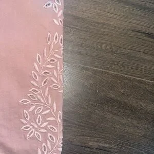 • Blush pink tone with tonal leaf embroidery