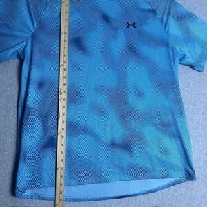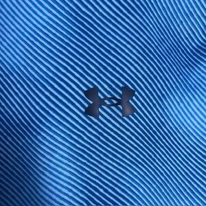Elevate your workout wardrobe with this Under Armour Tech Tee, a fusion of performance and style. The shirt features a unique striped pattern in shades of blue, creating a visually appealing look. Designed for athletic training, this tee incorporates moisture-wicking technology to keep you dry and comfortable during intense workouts. The lightweight fabric ensures breathability, while the loose fit allows for a full range of motion. The iconic Under Armour logo is subtly placed on the chest and back, adding a touch of brand recognition.