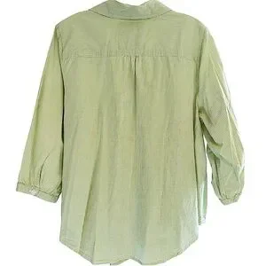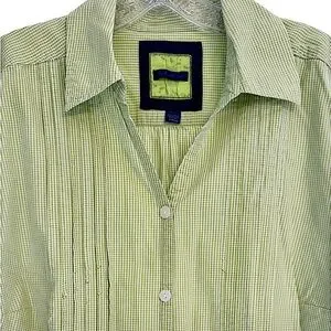 Avenue The Pleat Shirt Apple Green White Gingham Button Front 3/4 Sleeve 18/20