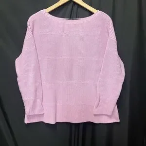 This gorgeous Talbots Plus bateau neck sweater is 100% Pima Cotton. It’s labeled a women’s 1X and measures 21” underarm to underarm. Neck/shoulder to waist is about 23”. It’s a very pretty Orchid Purple color with beautiful shaker stitching. In very good preowned condition with normal signs of wear and no noticeable stains or flaws.