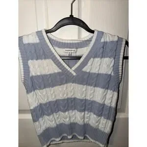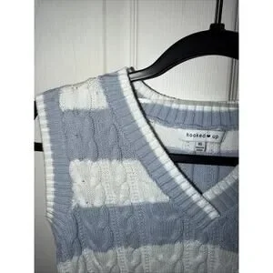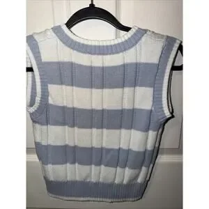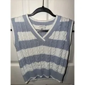 Hooked Up Women's Ruffled Sleeveless Sweater Size S XS Light Blue And White
